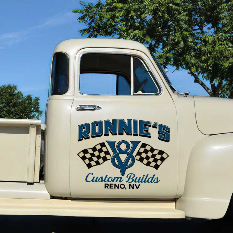 personalized custom builds garage v8 lettering door sign checkered flag lettering sticker uses advanced UV printing technology on durable vinyl panels. This ensures exceptional durability and resistance to environmental impacts while remaining safe for vehicle surfaces.