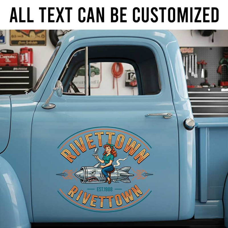 Personalized Custom Garage Door Decal with Retro Bomb Rocket Art and Classic Pinup Style sticker 14252 acts as the ultimate highlight for your Pinup Sticker style collection. Thanks to our superior material selection, enjoy unparalleled ruggedness and long-lasting quality. Whether indoors or outdoors, it easily stands strong against water damage, sunlight fading, and general environmental exposure.