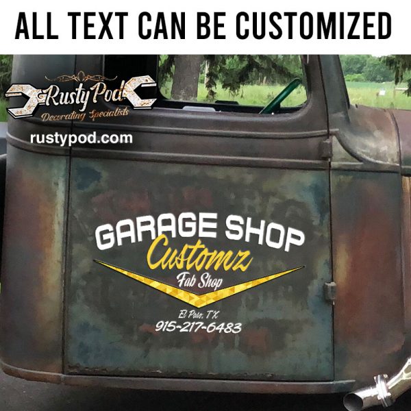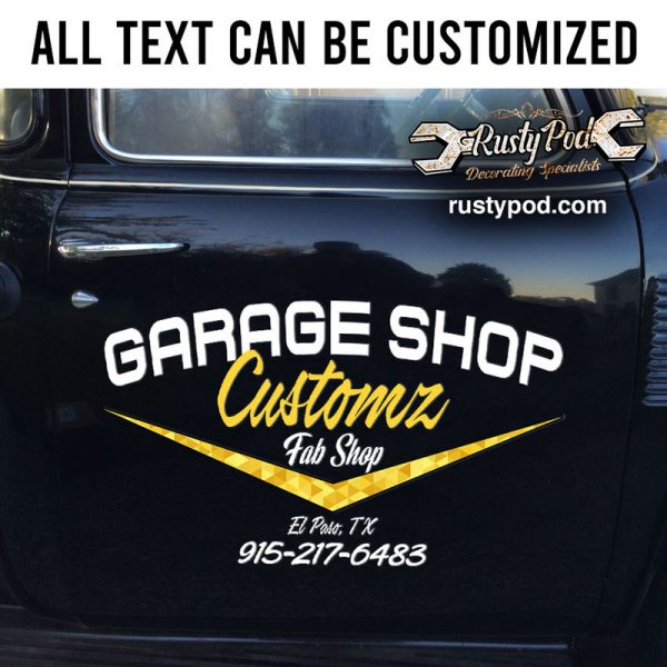 personalized custom garage fab shop lettering vinyl sticker 10513