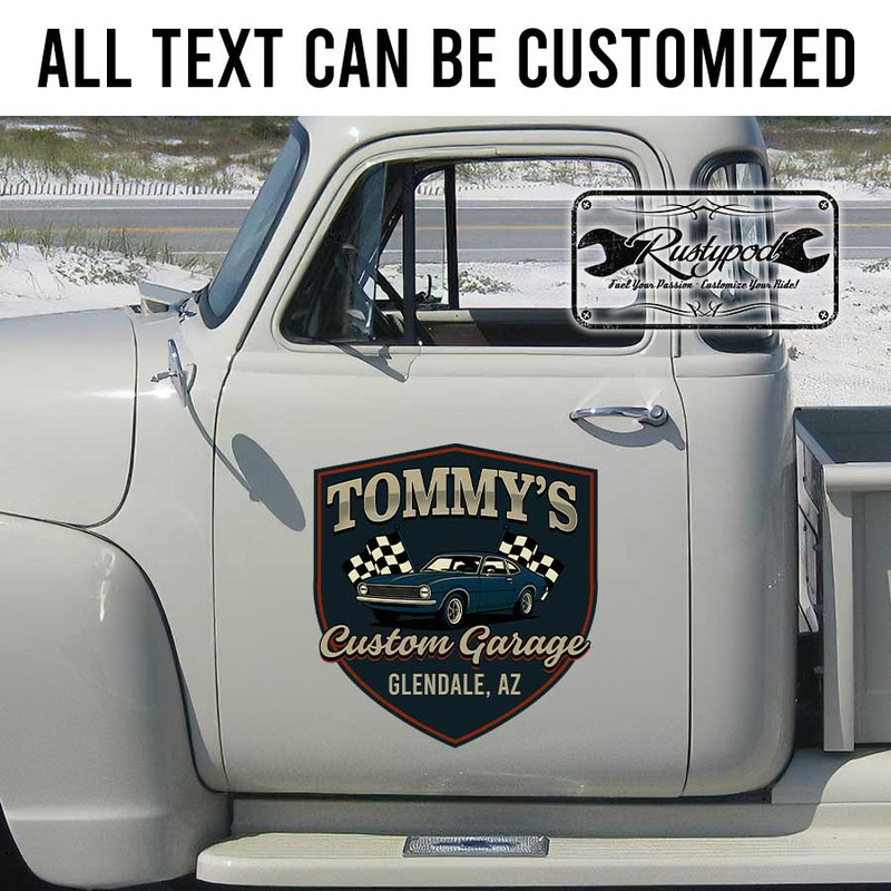 personalized custom garage lettering checkered flag sign speed shop sign muscle car garage sticker 13372