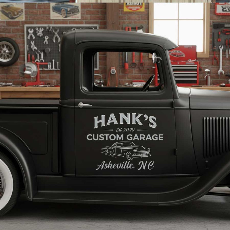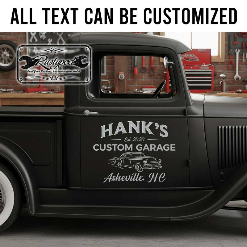 personalized custom garage sign decal hot rod decal rat rod door sign decal kustom kulture sticker utilizes advanced UV printing technology on premium vinyl panels, ensuring exceptional durability and long-lasting colors. This product boasts excellent resistance to harsh environmental impacts, maintaining its vibrant look over time. It is entirely safe for all vehicle surfaces and can be applied with ease by anyone.