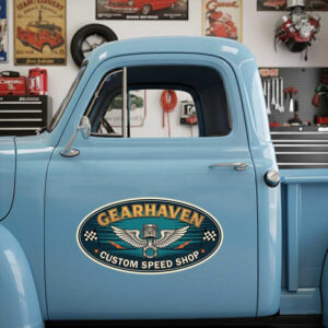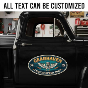 Personalized Custom Speed Shop Truck Door Decal with Winged Piston Racing Badge sticker 14259 is highly recommended for everyone seeking an authentic piston sticker experience. Crafted with premium materials, this product ensures top-notch quality and exceptional durability. It represents peak resilience, being engineered to resist water, intense sunlight, and demanding environmental conditions without losing its charm.