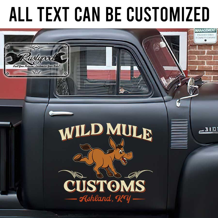 personalized donkey garage mule lettering pinstriping lettering sticker uses UV printing technology on vinyl panels, ensuring high durability and resistance to environmental impacts. It is safe for vehicle surfaces and easy to apply. The design of personalized donkey garage mule lettering pinstriping lettering sticker can be customized according to customer requirements, making it suitable for cars, motorbikes, glass doors, and more. personalized donkey garage mule lettering pinstriping lettering sticker is perfect for expressing personality and advertising brands. With personalized donkey garage mule lettering pinstriping lettering sticker, you get both functionality and style. Explore our wide range of designs related to vintage hot rod sticker. Customers might also like them