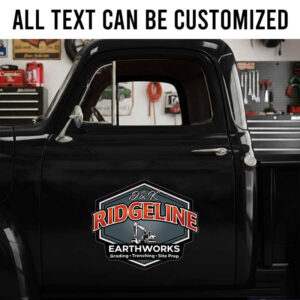 personalized earth work company lettering heavy equipment lettering sticker is crafted using advanced UV printing technology on durable vinyl panels.