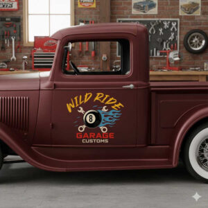 personalized eight ball and fire lettering decal wrench lettering decal garage customs sticker utilizes advanced UV printing technology on premium vinyl panels, ensuring exceptional durability and long-lasting colors. This product boasts excellent resistance to harsh environmental impacts, maintaining its vibrant look over time. It is entirely safe for all vehicle surfaces and can be applied with ease by anyone.