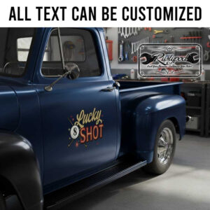 personalized eight ball hot rod lettering decal rat rod door art kustom kulture sticker utilizes advanced UV printing technology on premium vinyl panels, ensuring exceptional durability and long-lasting colors. This product boasts excellent resistance to harsh environmental impacts, maintaining its vibrant look over time. It is entirely safe for all vehicle surfaces and can be applied with ease by anyone.
