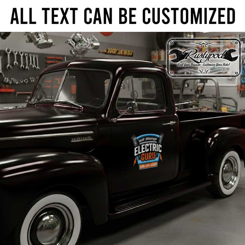 personalized electric company sign truck graphics pick up door sign sticker utilizes advanced UV printing technology on high-quality vinyl panels, ensuring vivid colors and outstanding durability. The decal boasts excellent resistance to environmental impacts such as sunlight, rain, and scratches, and is completely safe for all vehicle surfaces. Application is quick and hassle-free, making it perfect for both personal and business use. We offer customization according to your unique requirements and provide a contour cut option to remove excess material, creating a painted-on appearance for your sticker. Our products are ideal for cars, motorbikes, glass doors, and more, perfectly suited for showcasing personality or advertising your brand.