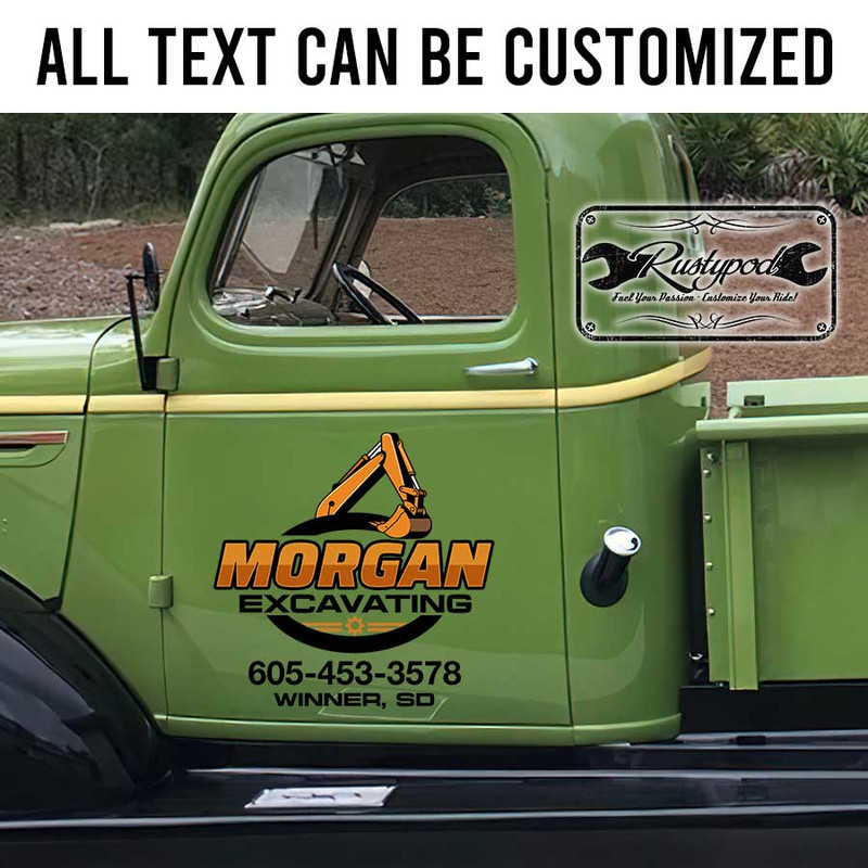 personalized excavating company construction company sign sticker uses advanced UV printing technology on vinyl panels, ensuring high durability and excellent resistance to environmental impacts. It is completely safe for vehicle surfaces and offers easy application.