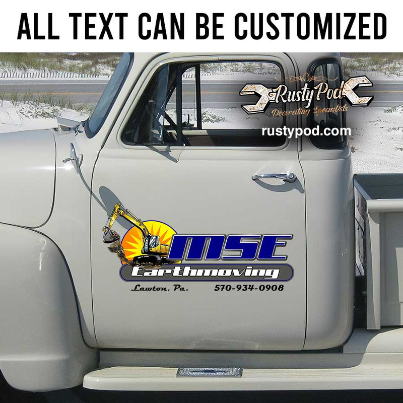 Additionally, personalized excavator company door sign construction company door sign truck graphics sticker designs can be printed on shirts and mugs at very reasonable prices, with fast shipping times.