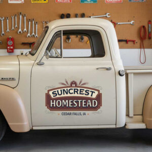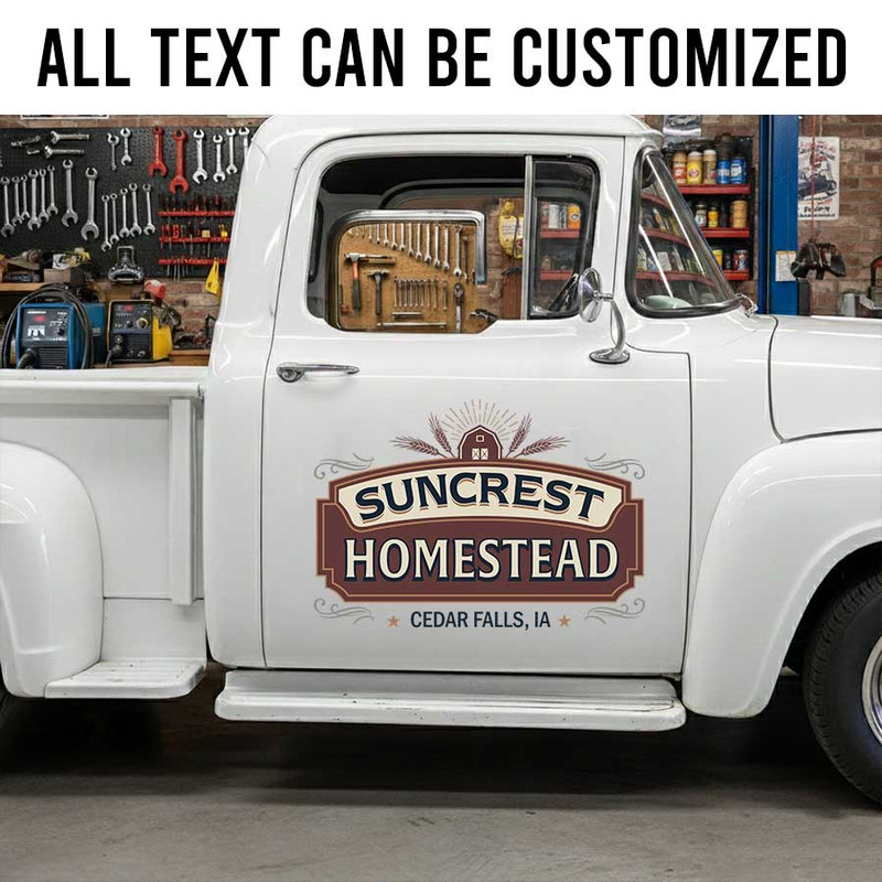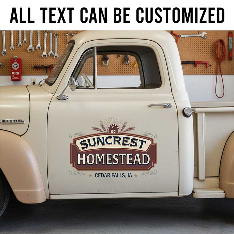 Personalized Farmhouse Style Door Decal with Custom Homestead Name and Heritage Emblem sticker 14255 acts as the ultimate highlight for your farm sticker style collection. Thanks to our superior material selection, enjoy unparalleled ruggedness and long-lasting quality. Whether indoors or outdoors, it easily stands strong against water damage, sunlight fading, and general environmental exposure.