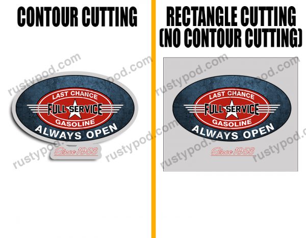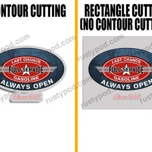 - Contour Cutting/Trim means that the decals are printed with an outline hugging the design. Meanwhile, with no contour cut, the outline will be a rectangle instead.