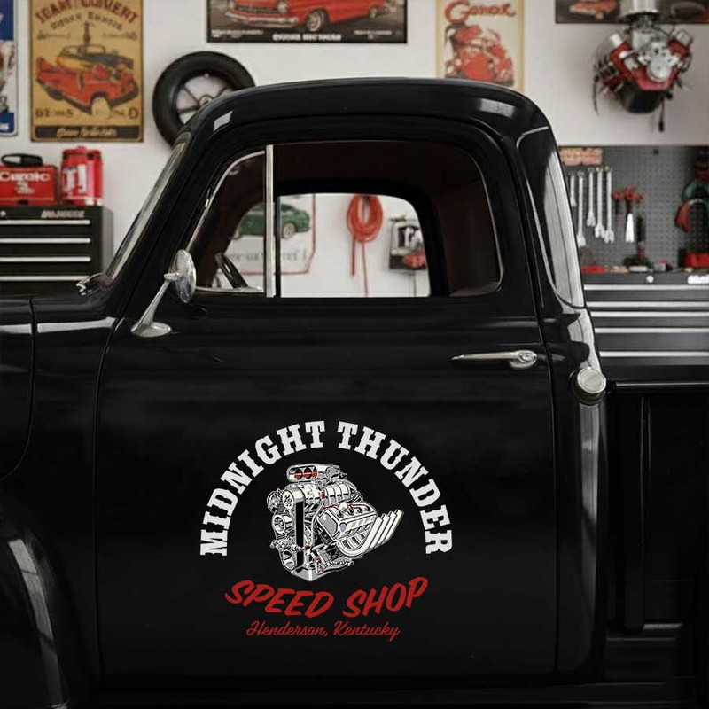 personalized gear box logo lettering decal old school lettering decal hot rod sticker is crafted using advanced UV printing technology on durable vinyl panels.