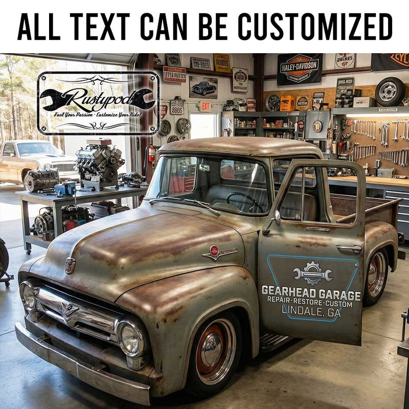 personalized gear head and wrench lettering decal hot rod decal restoration garage lettering sticker utilizes advanced UV printing technology on durable vinyl panels, ensuring high durability and exceptional resistance to environmental impacts. Our stickers are safe for vehicle surfaces and incredibly easy to apply. Each design is fully customizable to meet your unique requirements, and you can choose the contour cut option to eliminate excess decal, giving your sticker a seamless, painted-on look. These decals are suitable for cars, motorbikes, glass doors, and more—perfect for expressing your personality or advertising your brand.