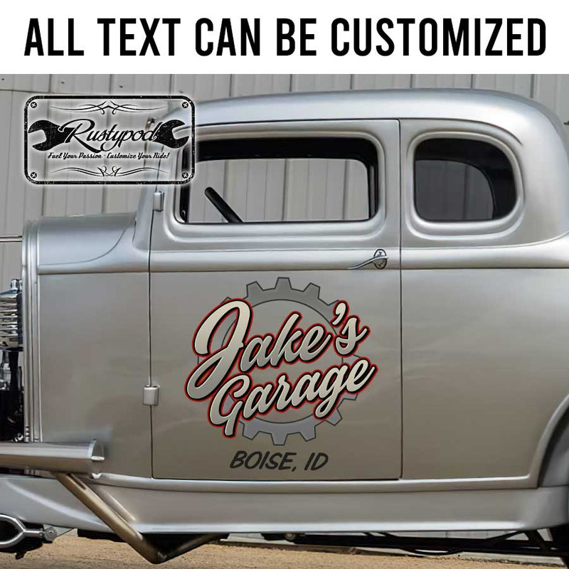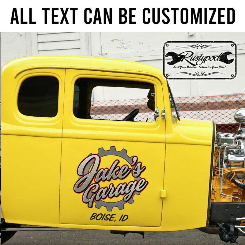 personalized gear head lettering garage door sign shop truck door art sticker 13373