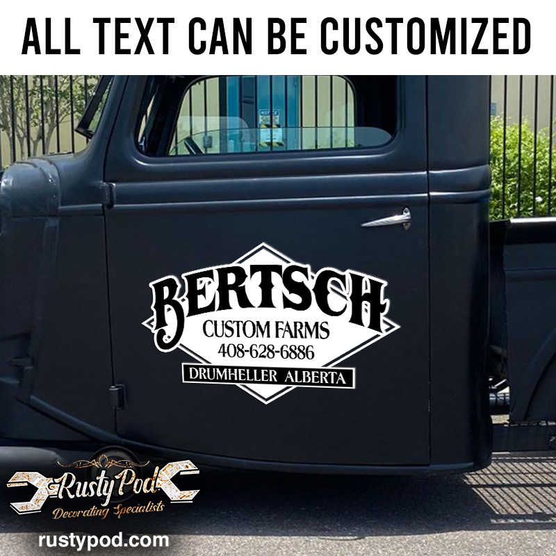 So why wait? Order your personalized harvesting logo lettering vinyl sticker 10832 today and give your truck the unique look it deserves. And be sure to check out our other car lettering-style products at Rustypod.