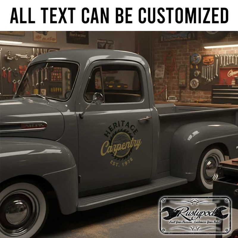 personalized heritage carpentry lettering decal car lettering decal woodworking company sign decal vehicle lettering sticker 13916
