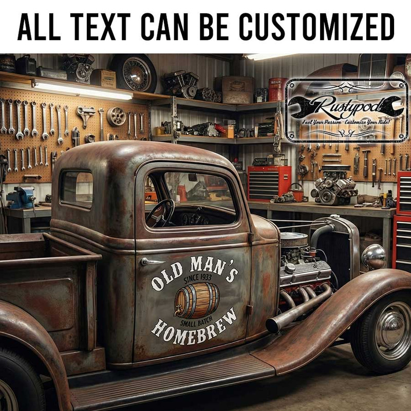 personalized homebrew sign decal hot rod decal moonshine lettering sticker utilizes advanced UV printing technology on high-quality vinyl panels, ensuring vivid colors and outstanding durability. The decal boasts excellent resistance to environmental impacts such as sunlight, rain, and scratches, and is completely safe for all vehicle surfaces. Application is quick and hassle-free, making it perfect for both personal and business use. We offer customization according to your unique requirements and provide a contour cut option to remove excess material, creating a painted-on appearance for your sticker. Our products are ideal for cars, motorbikes, glass doors, and more, perfectly suited for showcasing personality or advertising your brand.