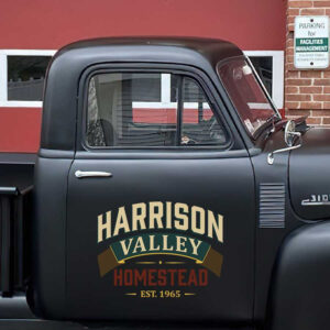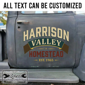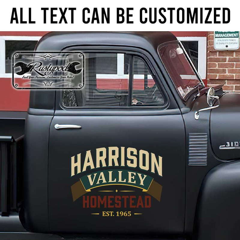 personalized homestead lettering farm door sign ranch sign truck graphics sticker utilizes advanced UV printing technology on premium vinyl panels, ensuring exceptional durability and long-lasting colors. This product boasts excellent resistance to harsh environmental impacts, maintaining its vibrant look over time. It is entirely safe for all vehicle surfaces and can be applied with ease by anyone.
