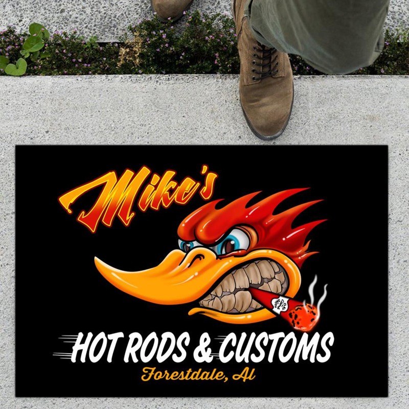 personalized hot rod angry bird lettering for antique cars door mat 10667