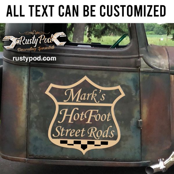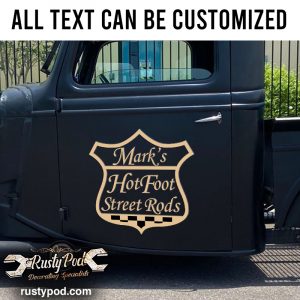 Be the first to review “personalized hot rod badge lettering vinyl sticker 10403”