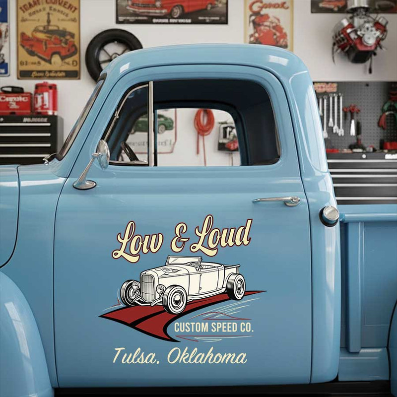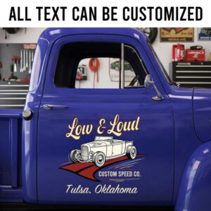 personalized hot rod car decal car lettering decal speed shop sign decal sign writing sticker is crafted using advanced UV printing technology on durable vinyl panels.
