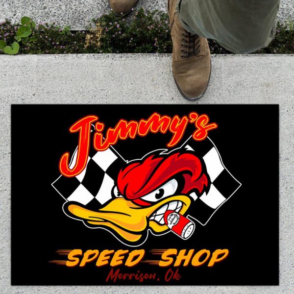 personalized hot rod duck and racing flag lettering door mat 10669