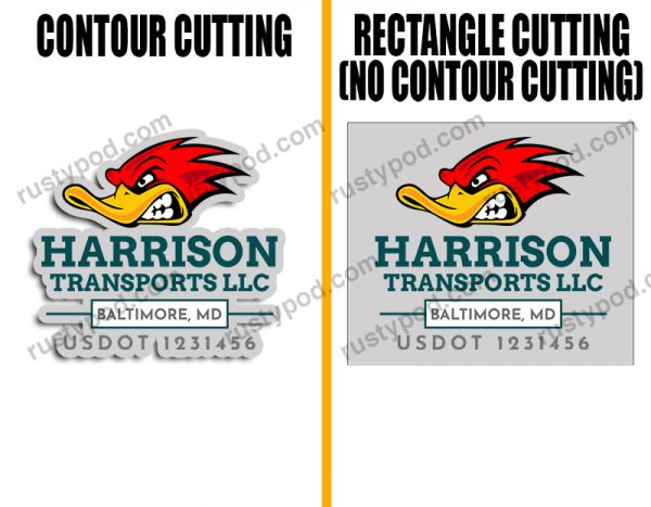 - Contour Cutting/Trim means that the decals are printed with an outline hugging the design. Meanwhile, with no contour cut, the outline will be a rectangle instead.