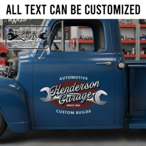 personalized hot rod garage lettering decal wrench logo lettering decal kustom kulture sticker utilizes advanced UV printing technology on premium vinyl panels, ensuring exceptional durability and long-lasting colors. This product boasts excellent resistance to harsh environmental impacts, maintaining its vibrant look over time. It is entirely safe for all vehicle surfaces and can be applied with ease by anyone.