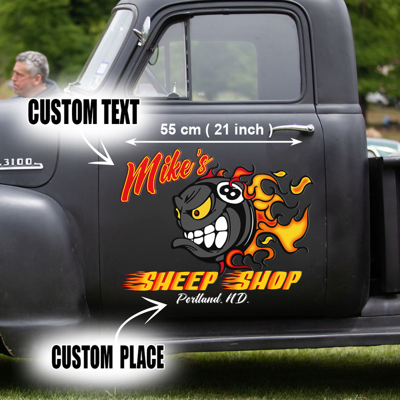 2 PCS personalized hot rod garage | speed shop | kustom kultrure | old school vinyl stickers 09546