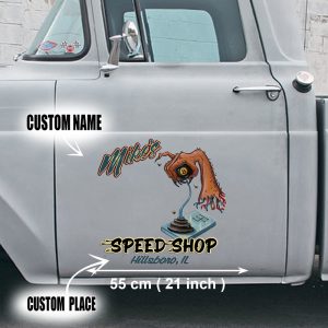 Be the first to review “2 PCS personalized hot rod garage | speed shop | kustom kultrure | old school vinyl stickers 09572”