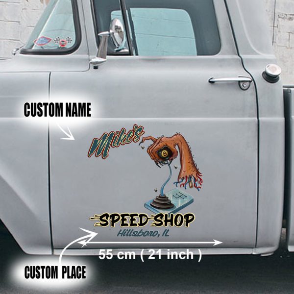 2 PCS personalized hot rod garage | speed shop | kustom kultrure | old school vinyl stickers 09572