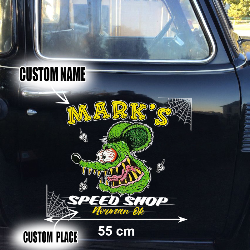 2 PCS personalized hot rod garage | speed shop | kustom kultrure | old school vinyl stickers 09582