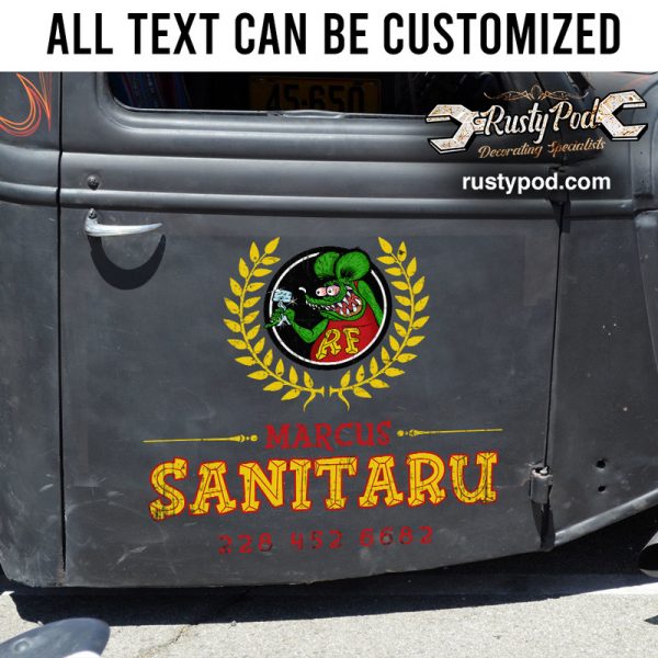 Do not delay any further?place your order for the personalized hot rod Rat Fink Garage lettering sticker 11122 now!