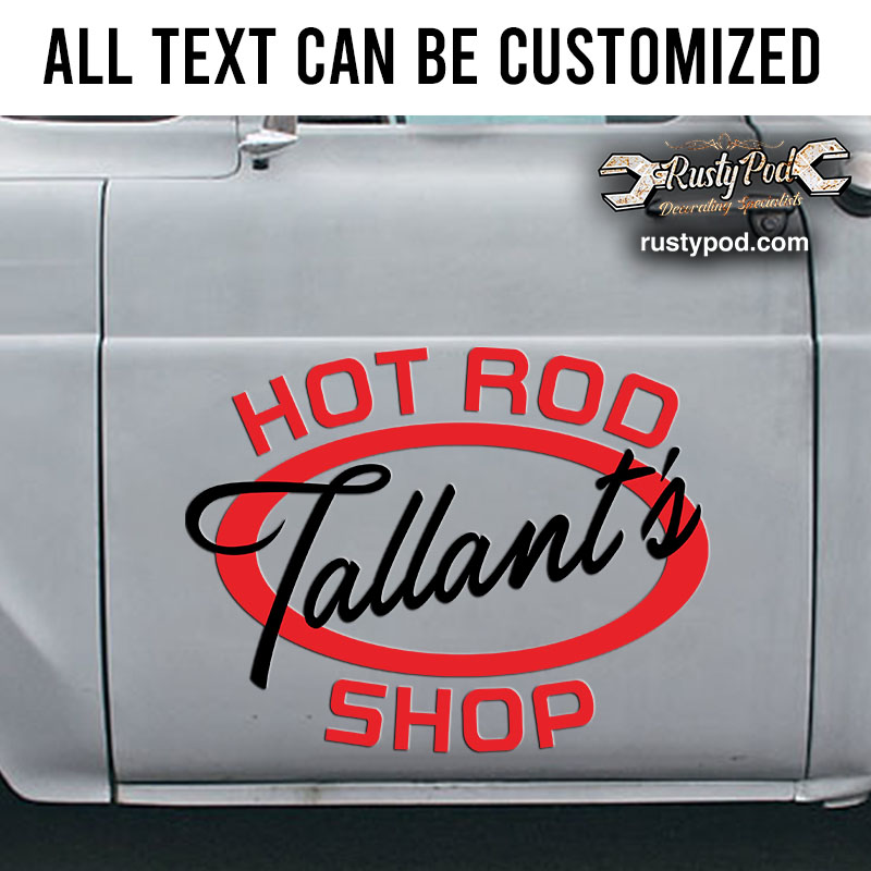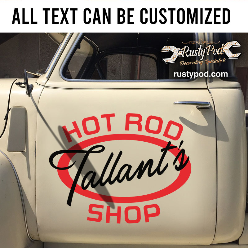 personalized hot rod shop lettering vinyl sticker 10591