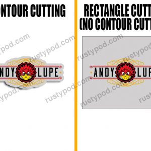 • Contour Cutting/Trim means that the decals are printed with an outline hugging the design. Meanwhile, with no contour cut, the outline will be a rectangle instead.
