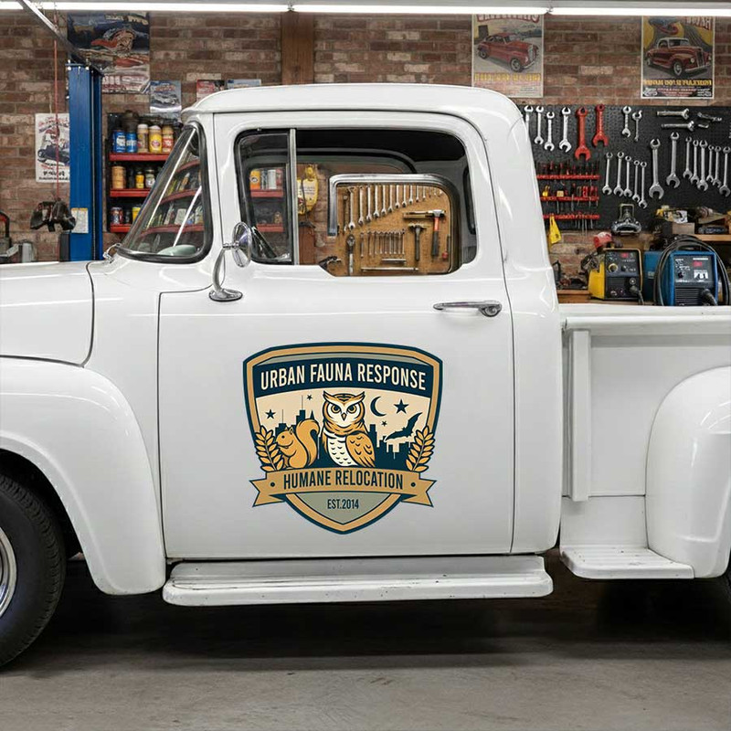 Personalized Humane Wildlife Relocation Truck Door Decal for Urban Animal Control Services sticker 14235