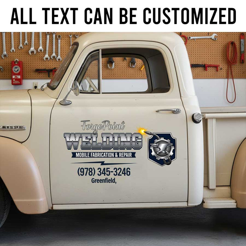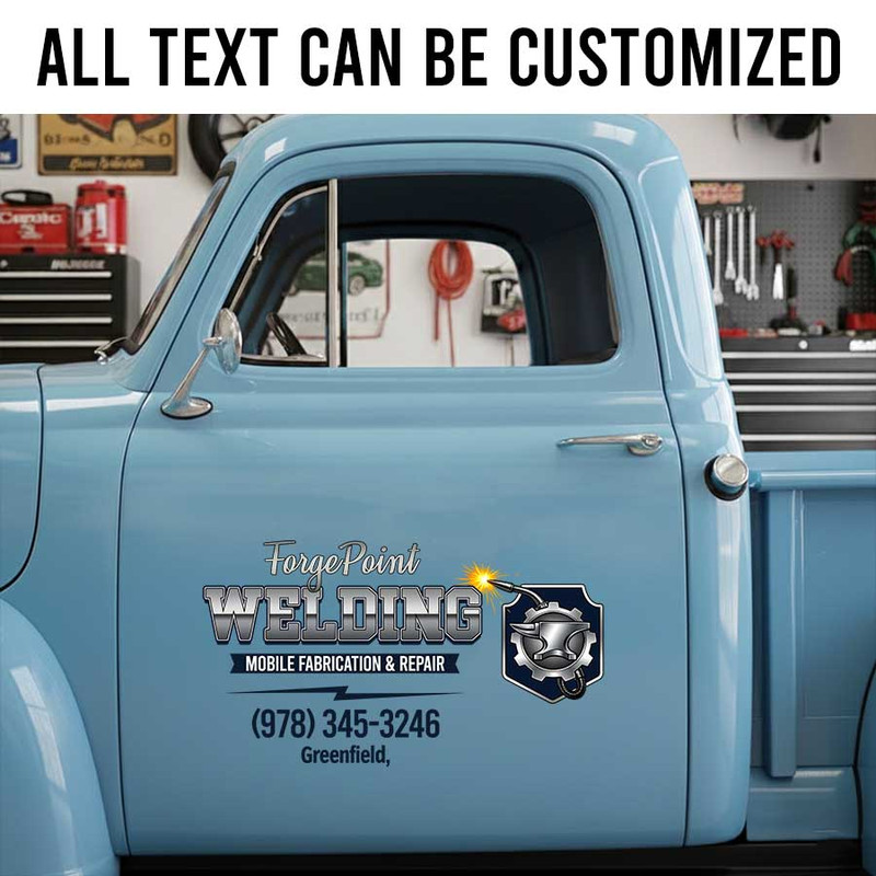 Personalized Industrial Welding Company Decal with Custom Name and Metalwork Emblem sticker 14248 is perfectly tailored for you if you love all things welding sticker. Built using industry-leading materials, our decal guarantees rigorous durability to last you for years. Feel confident in its lasting power, as it is fully fortified against water splashes, direct sunlight exposure, and harsh environmental wear.