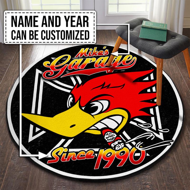personalized IRON CROSS WOODY WOOD PECKER | hot rod garage round mat 08610