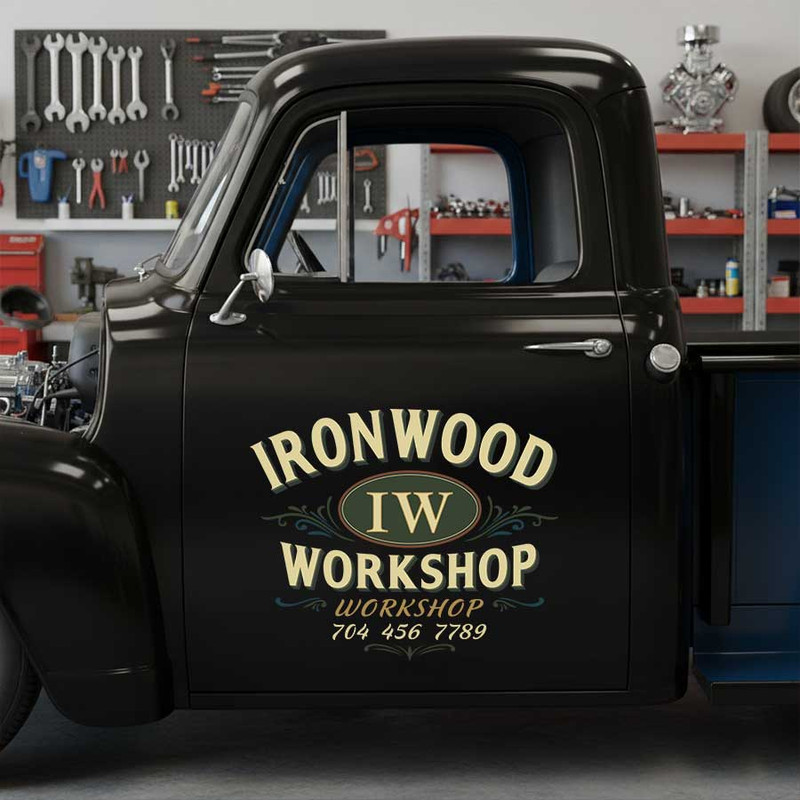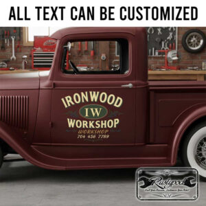personalized iron wood workshop lettering decal pinstriping art decal car lettering sticker utilizes advanced UV printing technology on premium vinyl panels, ensuring exceptional durability and long-lasting colors. This product boasts excellent resistance to harsh environmental impacts, maintaining its vibrant look over time. It is entirely safe for all vehicle surfaces and can be applied with ease by anyone.