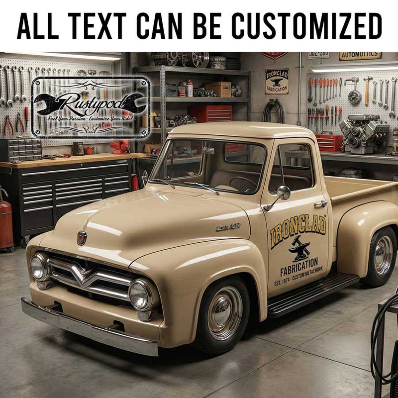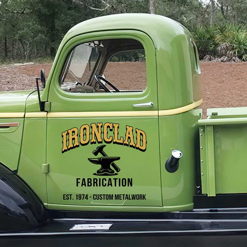 personalized iron works lettering decal fabrication company sign decal black smith sign sticker utilizes advanced UV printing technology on durable vinyl panels, ensuring high durability and exceptional resistance to environmental impacts. Our stickers are safe for vehicle surfaces and incredibly easy to apply. Each design is fully customizable to meet your unique requirements, and you can choose the contour cut option to eliminate excess decal, giving your sticker a seamless, painted-on look. These decals are suitable for cars, motorbikes, glass doors, and more—perfect for expressing your personality or advertising your brand.