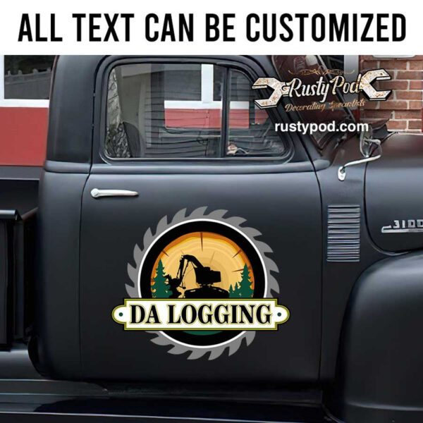 personalized logging company door art wood working company sign truck graphics sticker uses UV printing technology on vinyl panels, ensuring high durability and resistance to environmental impacts. This makes it safe for vehicle surfaces and easy to apply. The design can be customized according to customer requirements, including the option of contour cut which helps eliminate excess decal, making the sticker look painted on. personalized logging company door art wood working company sign truck graphics sticker is suitable for use on cars, motorbikes, glass doors, and more. It is perfect for expressing personality and advertising brands. Moreover, personalized logging company door art wood working company sign truck graphics sticker designs can be printed on shirts and mugs at a very reasonable price with fast shipping times.