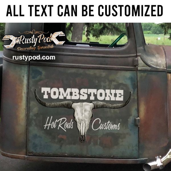 Be the first to review “personalized long horn custom garage lettering vinyl sticker 10523”