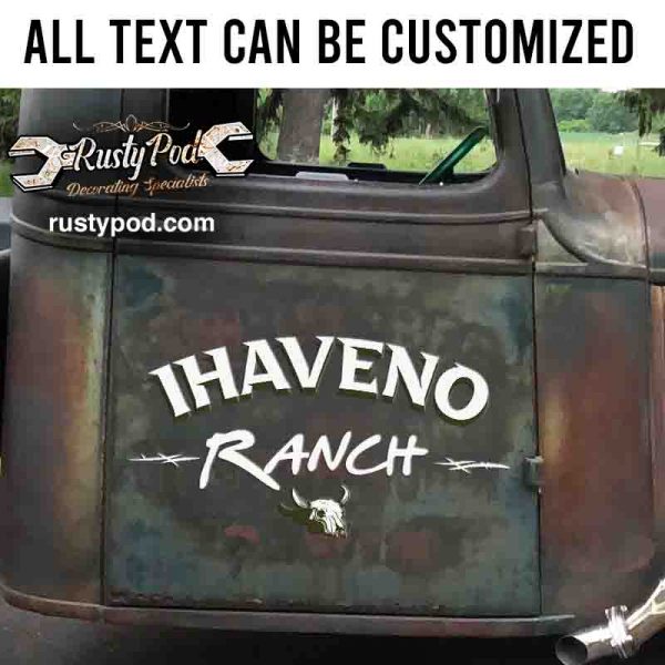 Be the first to review “personalized long horn ranch vinyl sticker 10470”