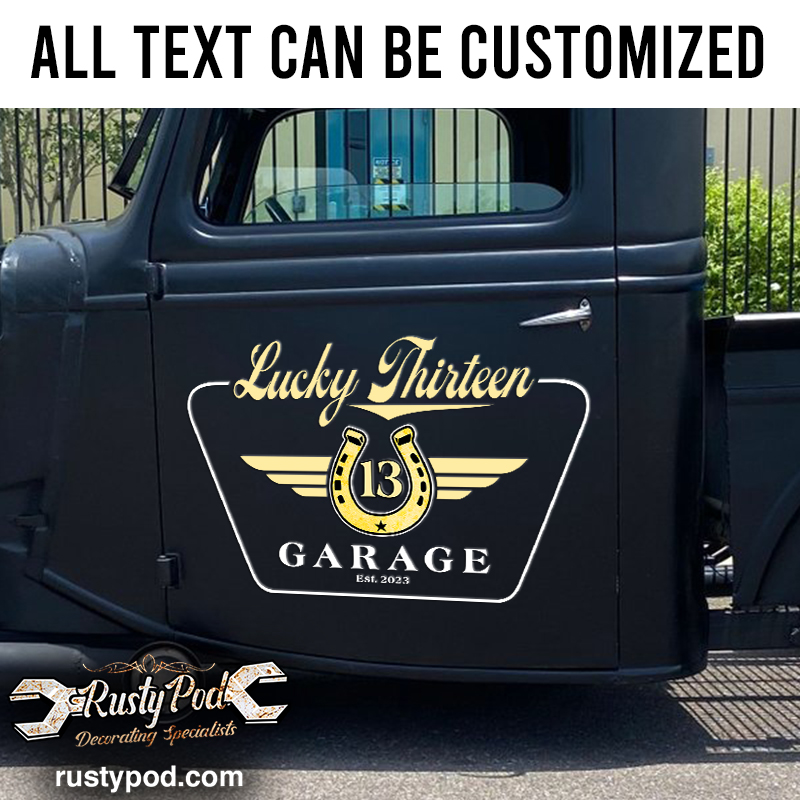 Add personality and highlights to your favorite vehicle with our personalized lucky thirteen lettering vinyl sticker . Made of high-quality materials, it is waterproof and can withstand harsh weather conditions such as rain or direct sunlight.