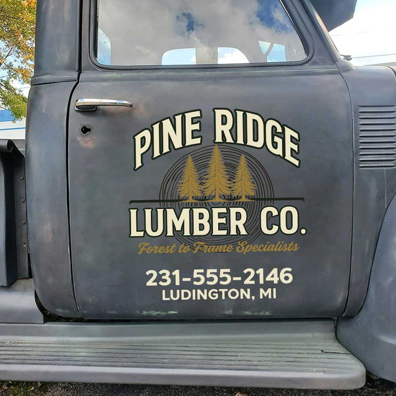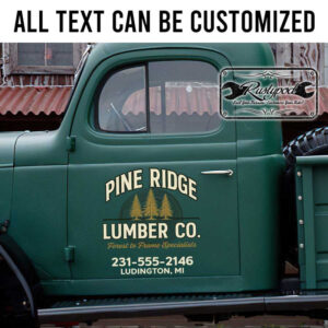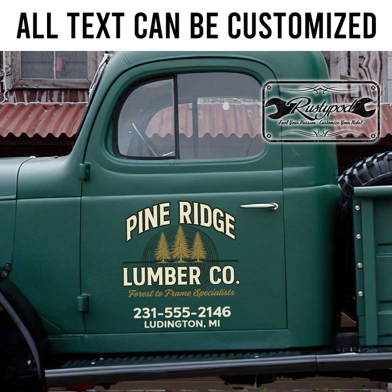personalized lumber company sign timber woodworking carpentrer lettering sticker uses advanced UV printing technology on vinyl panels, ensuring high durability and excellent resistance to environmental impacts. It is completely safe for vehicle surfaces and offers easy application.
