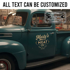 personalized meat company lettering decal car lettering decal kustom kulture decal hot rod lettering sticker 13935