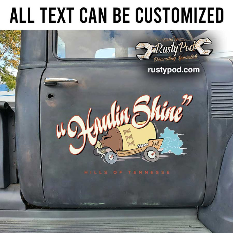personalized moon shine hot rod lettering hand paint vintage truck door art kustom kulture lettering sticker 12542