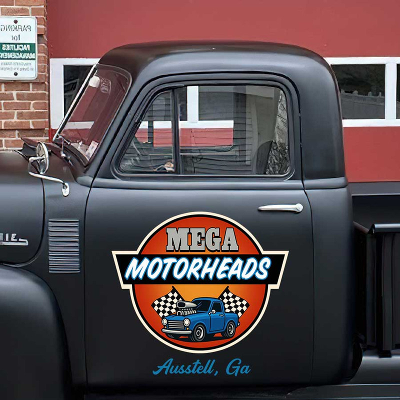 personalized motorhead garage lettering hot rod lettering shop truck door art checkered flag lettering sticker uses advanced UV printing technology on vinyl panels, ensuring high durability and excellent resistance to environmental impacts. It is completely safe for vehicle surfaces and offers easy application.