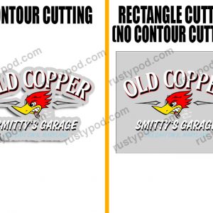 • Contour Cutting/Trim means that the decals are printed with an outline hugging the design. Meanwhile, with no contour cut, the outline will be a rectangle instead, with a length of 21inch.