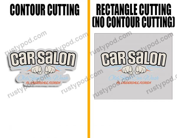 - Contour Cutting/Trim means that the decals are printed with an outline hugging the design. Meanwhile, with no contour cut, the outline will be a rectangle instead.